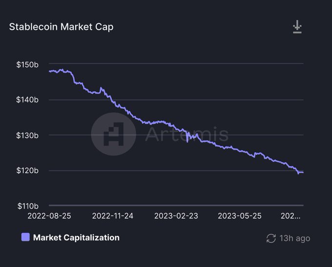 The long steep decline in Stablecoin market cap could easily be worse than it is and isn't at all surprising. That's in view of the inherent risk involved, past failures, lack of insurance and too much investing in commercial paper and other less solid and lower liquidity assets.