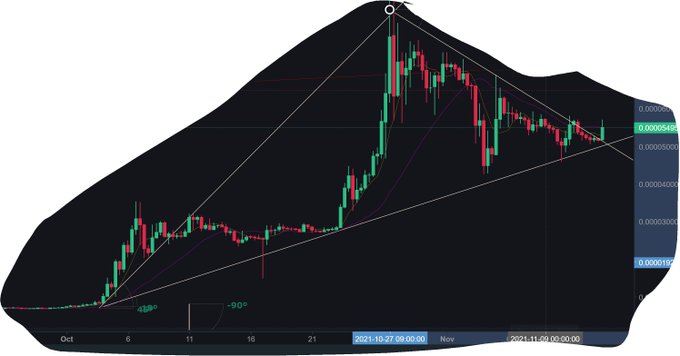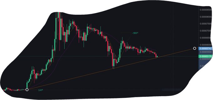 Geometric angles can predict major support areas and swing high/lows like this chart where the angles (which also formed a wedge formation) and drawn several days ago on shiba inu 8-hour bar chart!