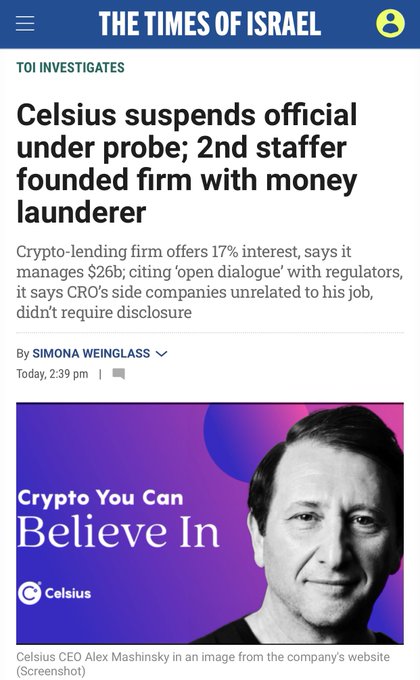 * Celsius Network CEO Alex was 2019 advisor to CFOs old firm!