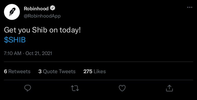 She told us that Robinhood has all the infrastructure in place to launch #SHIB. Just waiting for the final