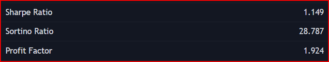 A Davidd.Tech video re The Moving Average nonsense was great: https://twitter.com/webtrading/status/1681340201363460096?s=20 however recent videos are not so good, in particular the latest. Davidd may be putting way too much emphasis on win rates what with last 2 vids on 78% and 64% wininng trade strategies. Our current strategy has a strong Sharpe=0.978 & Sortino=7.296 & Profit Factor=1.88 with low Drawdown=10.67%, but only 30% winning trades! Not sure what Davidd's Sharpe, Sortino, PF & Drawdowns are on high win rate vids but suspect the 4 stats may not be that good, which if correct confirms winning trade percentages are not as important as widely believed.