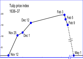 The Tulip bulb mania was similar to the recent NFT price rise & fall. The mania was a time when tulip-bulbs reached amazing prices but quickly collapsed. At its 1637 peak tulip futures contracts sold for an incredible ten-times the 17th century yearly income of a Dutch (Netherlands) skilled worker, when futures on one tulip-bulb sold for an astonishing 5,400 Guilders on Dutch Futures Exchange, more than cost of buying a nice Amsterdam house! Amazing but true!