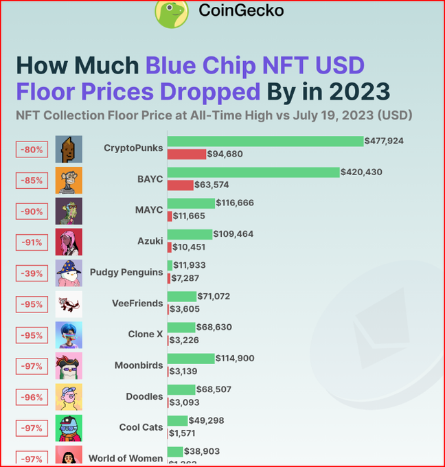 Long ago we posted on the incredible hyped-up prices of NFT's and how an NFT is basically worthless as all you had was an htm image link and no actual image or a trademark. To make it worse the link could go away at any time if its server was shut-down. Chart below from CoinGecko.