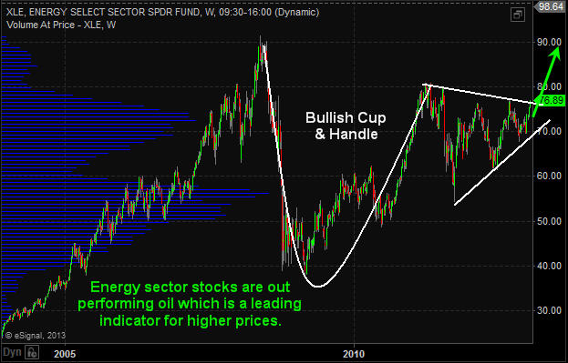The utility sector has done well and continues to look very bullish for 2013. This high dividend paying sector is liked by many and the price action speaks for its self… If the overall financial market starts to peak then these sectors should hold up well because they are services, dividend and a commodity play wrapped in one.