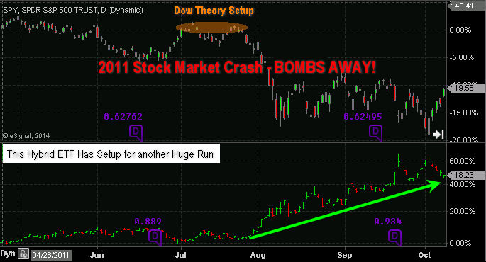 Keeping this post short and sweet, I think the US stock market is setting up for a sharp sell-off. And it will look a lot like the July 2011 correction. If my calculations are correct this will happen in the next 3-9 weeks and we will see a 15% drop from our current levels. Only time will tell, but I have a way to hedge against this with very little downside risk to you ETF portfolio.