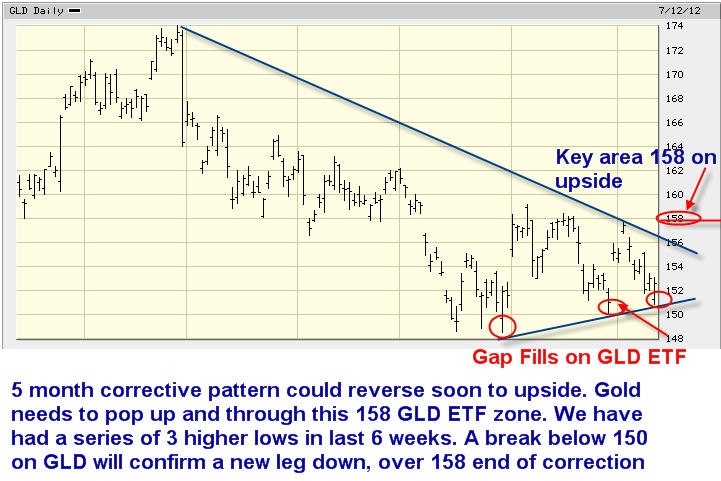 Advice would be to start scaling into long positions on a break over 158 on the GLD ETF and adding on pullbacks along the way up. If we can’t break 158 then the advice is to sit back and watch before acting.